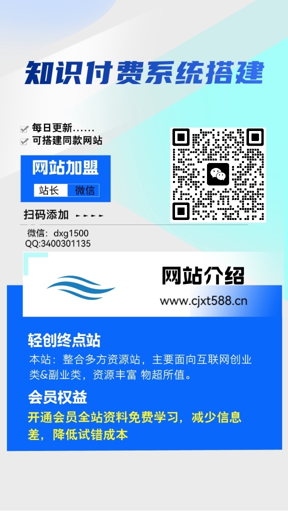加盟轻创终点站,加盟搭建同款知识付费资源网站,实现长期稳定被动收入~